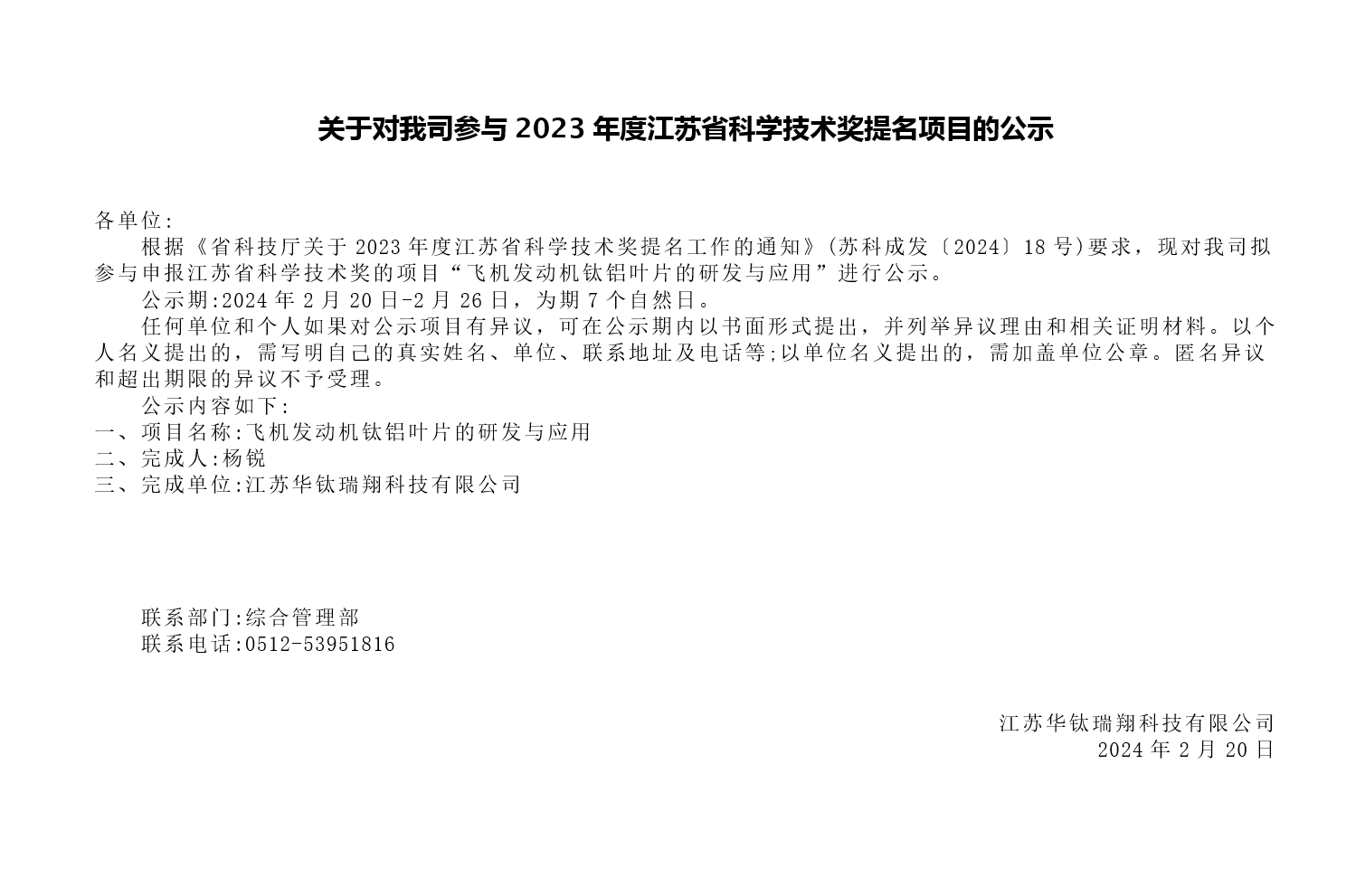各單位: 根據《省科技廳關于2023年度江蘇省科學技術獎提名工作的通知》(蘇科成發〔2024〕18號)要求,...